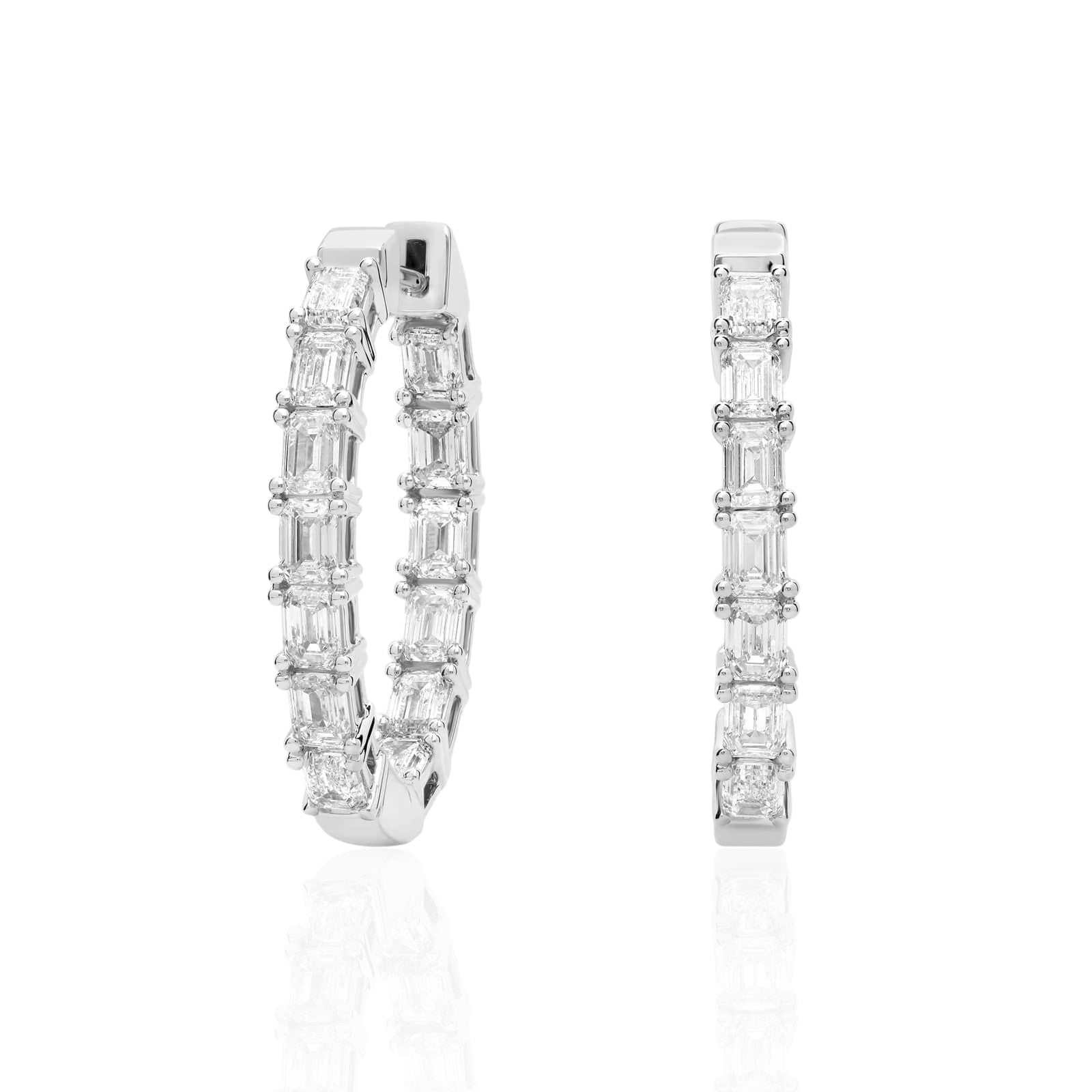 These stunning Astra North South Emerald Hoops are expertly crafted in your choice of 14k white or yellow gold. Choose from a 4 or 8 TCW and enjoy the flawless D-E color and VS to VVS clarity. Elevate your look with this exclusive and luxurious design, also offered in Yellow Gold.