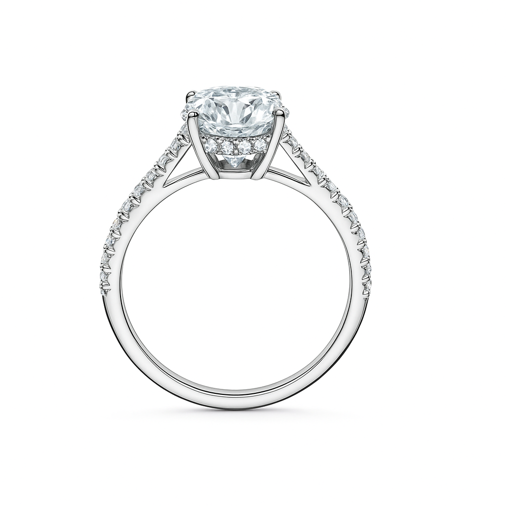 The Aura Engagement Setting (Setting Only) demonstrates exceptional craftsmanship in 18k yellow or white gold, featuring a hidden halo of diamonds that delivers a subtle yet striking sparkle around the center gemstone. This elegant design boosts the brilliance of your selected stone while preserving a refined and graceful silhouette. The concealed halo enhances the ring’s overall appeal with a modern interpretation of traditional engagement settings. Built for lasting strength and beauty, this setting provides an ideal base to showcase your unique diamond or gemstone with timeless sophistication. It also includes a shoulder setting for added support and style.