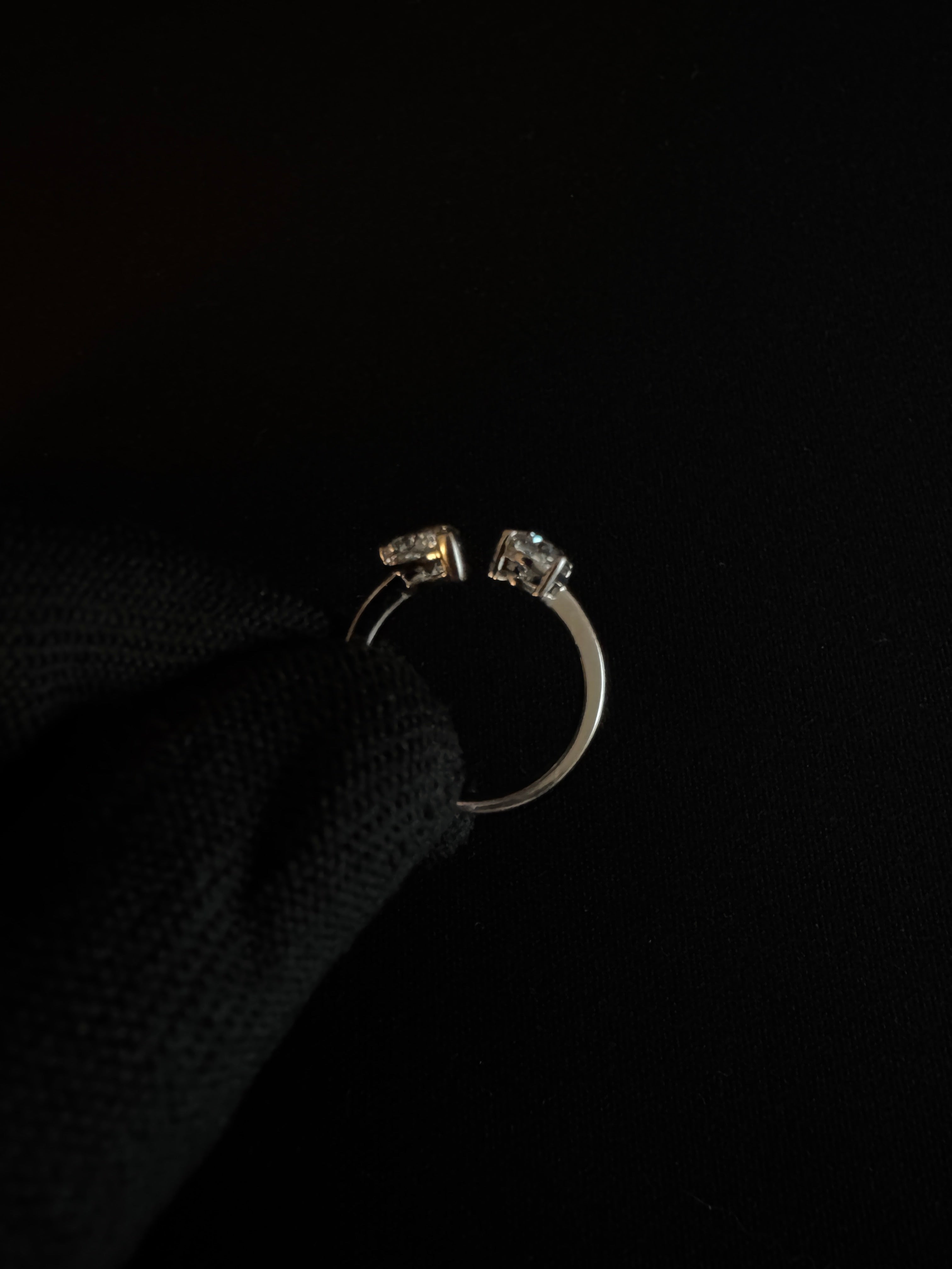 This elegant ring showcases a unique blend of oval and pear-shaped stones, handcrafted from 18K white gold and boasting an impressive combined weight of 2.12 carats.