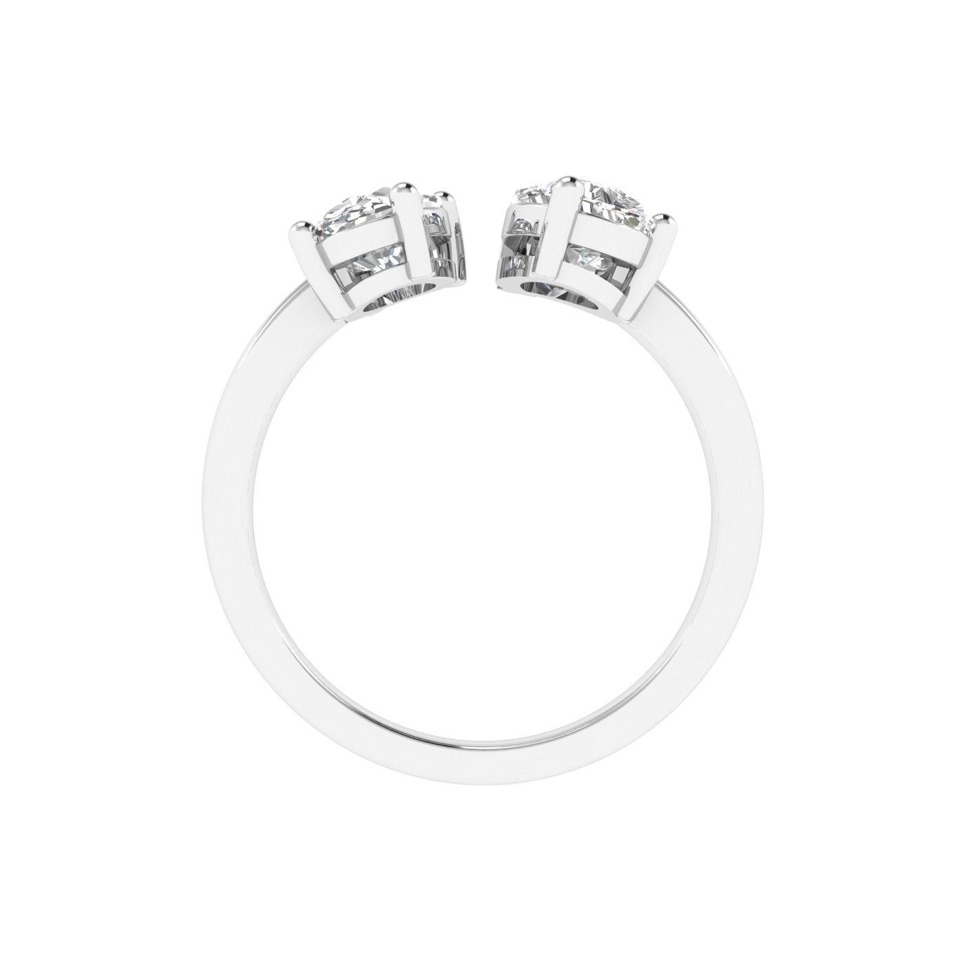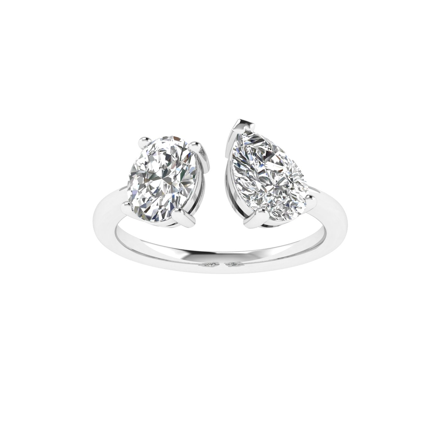 Double Stone Round & Pear Ring in 18k White Gold (TCW: 1.5)