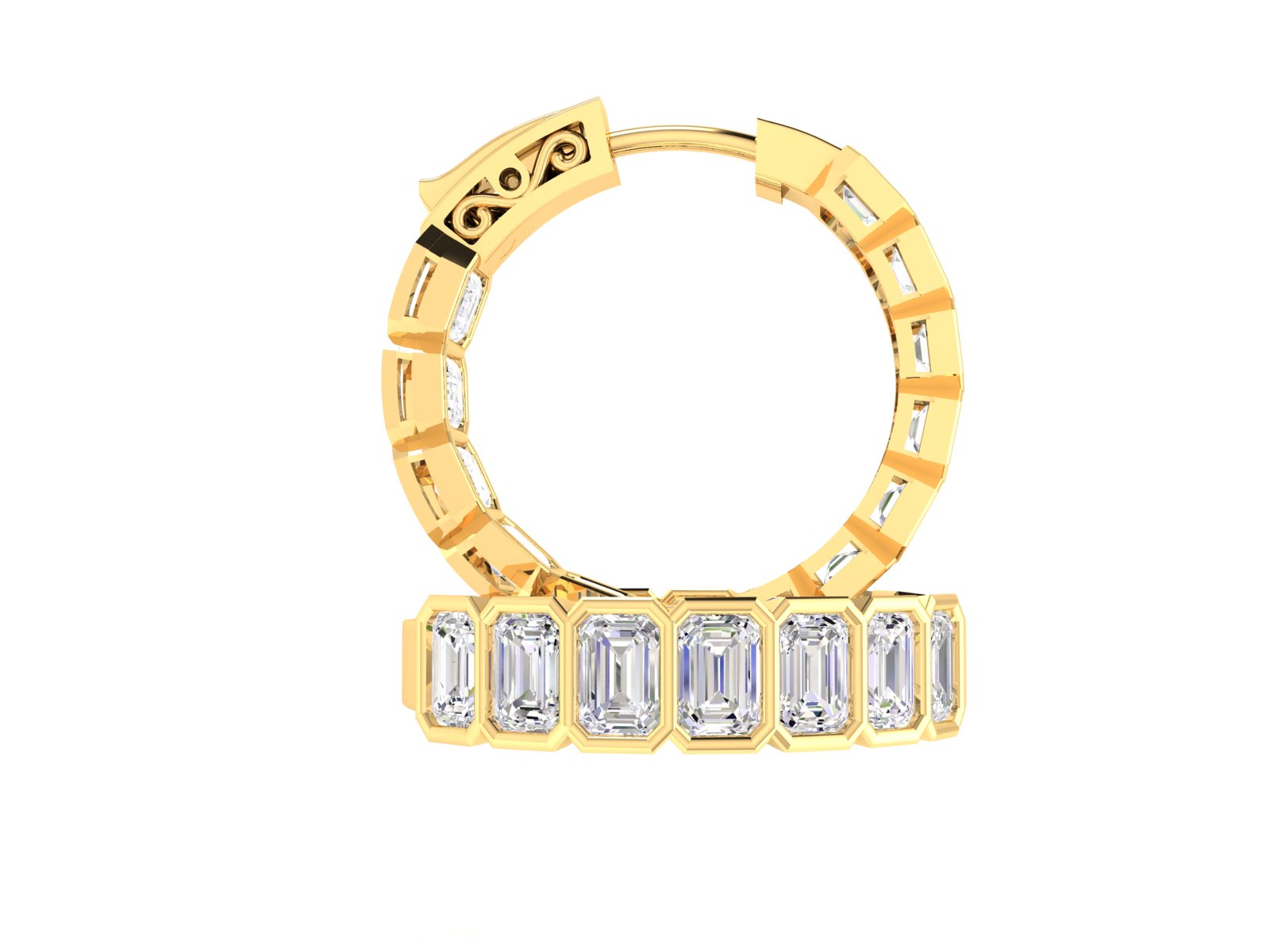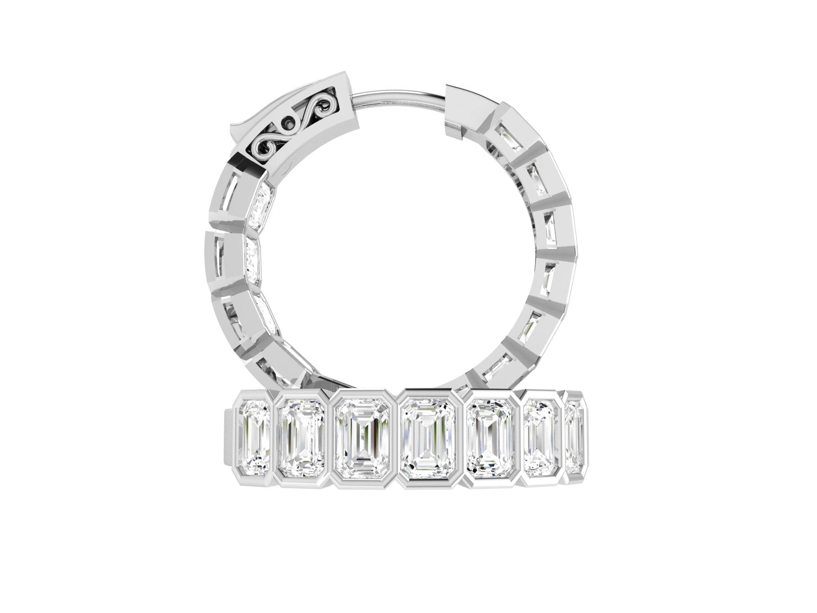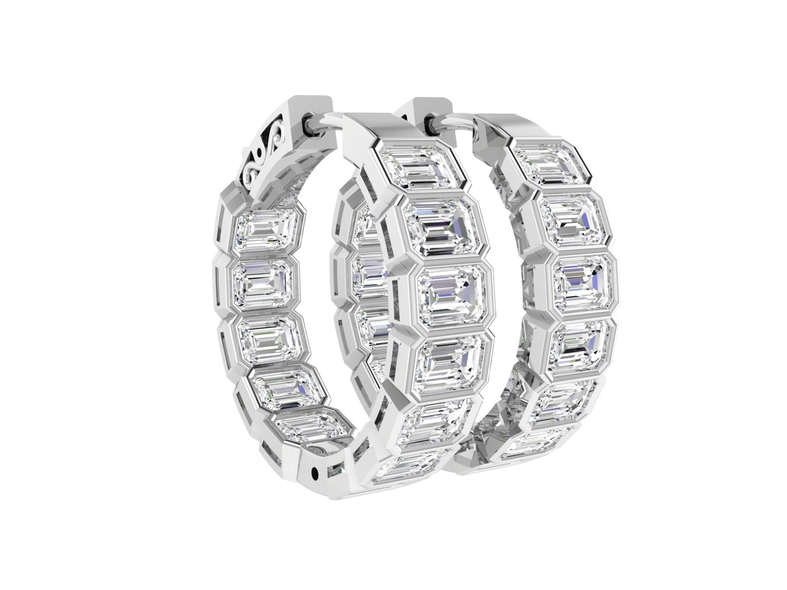 Indulge in luxury with the Emerald Bezel Hoops (Available in 2.4 or 4.8 carats). Immerse yourself in the timeless beauty of these hoops, featuring ethically sourced diamonds of impeccable clarity (VS-VVS) and color (D-E). Elevate any outfit with the refined elegance of these emerald beauties. Perfect for gifting or adding a touch of sophistication to your daily style, entrust the expertise of these hoops to deliver only the finest diamonds for your special someone. Available in 14k White gold or 14k yellow gold.
