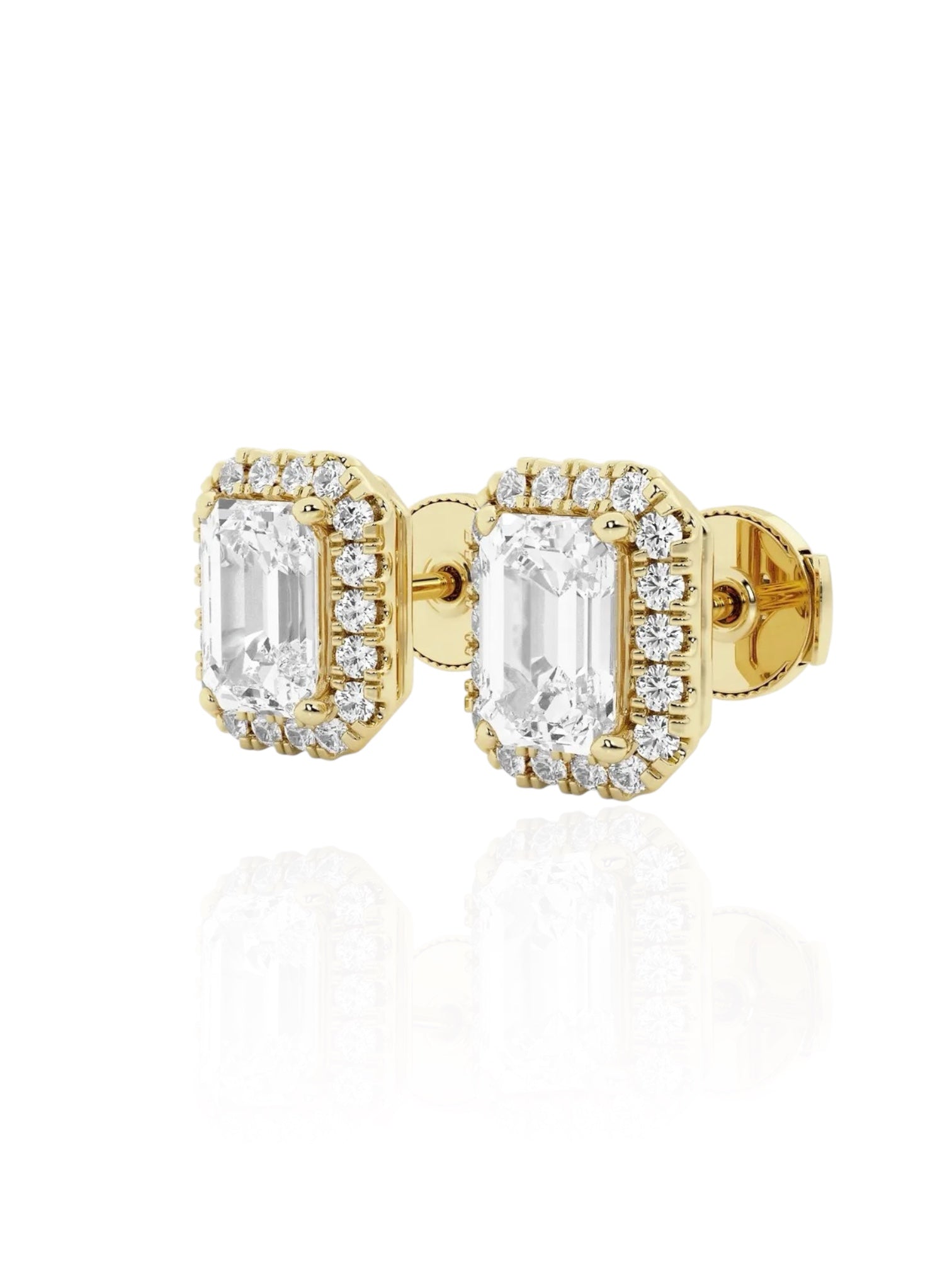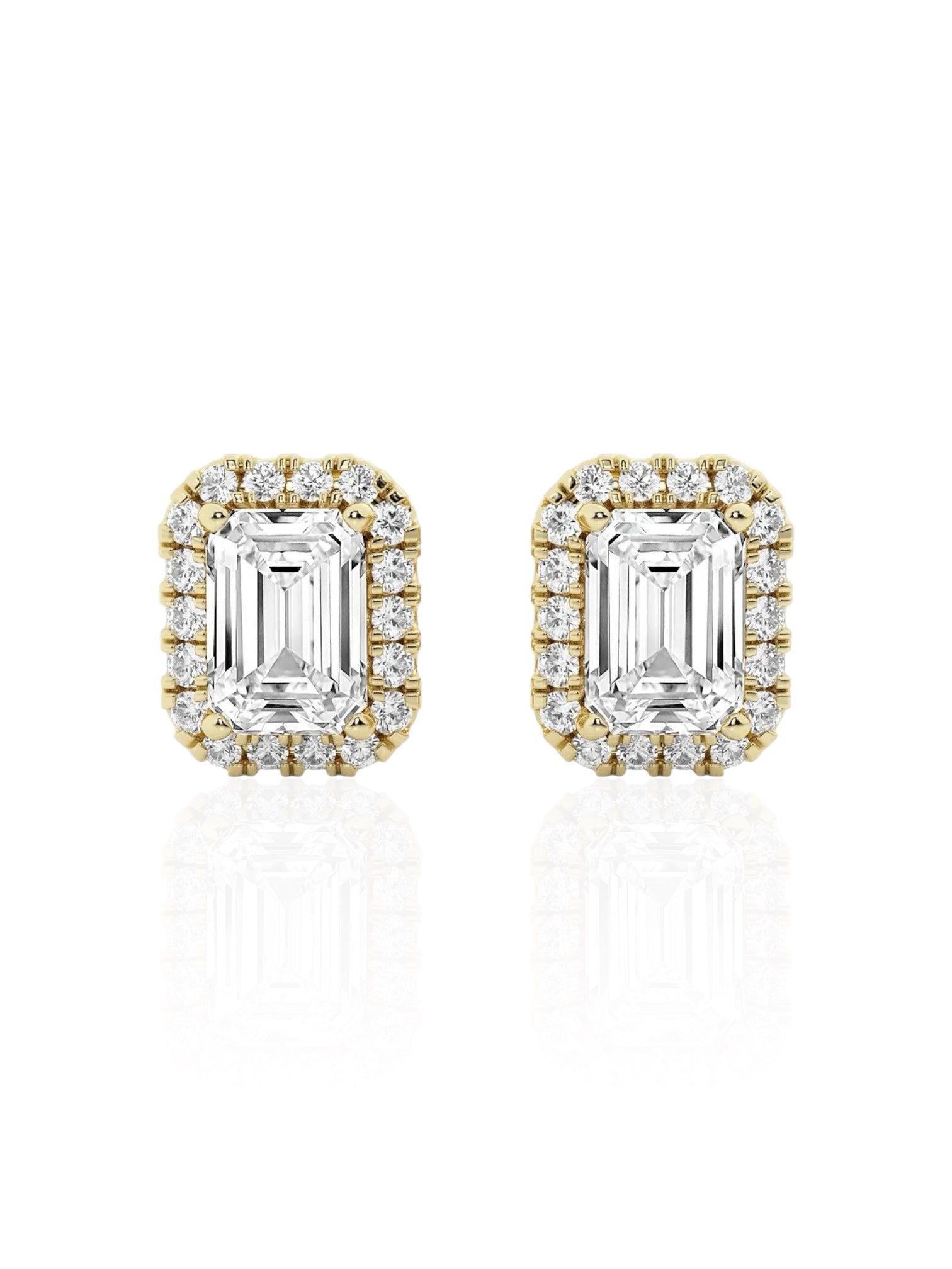 Indulge in the stunning allure of Vara's Emerald Round Brilliant Halo Earrings, crafted from 14k yellow or white gold. Boasting a TCW of 1.26 and a sparkling diamond weight of 1.21 CT, these earrings showcase VS to VVS clarity and a dazzling D-E color for a truly flawless look. Elevate any outfit with these luxurious and exclusive earrings, perfect for the sophisticated and refined connoisseur.