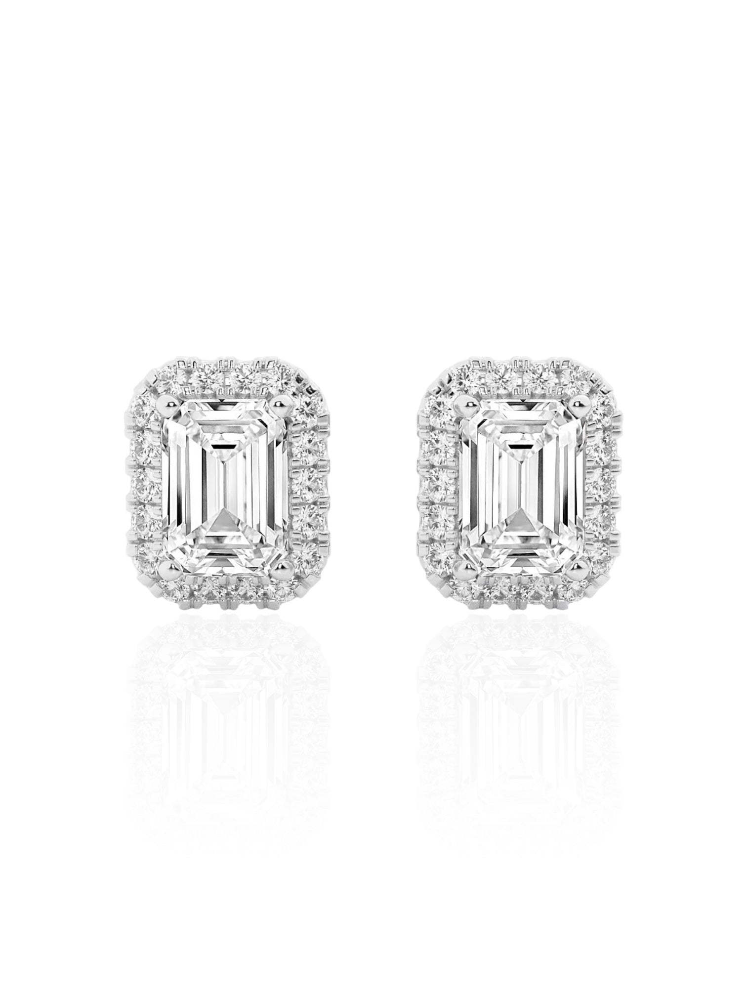 Emerald Round Brilliant Halo Earrings (TCW: 1.26)
