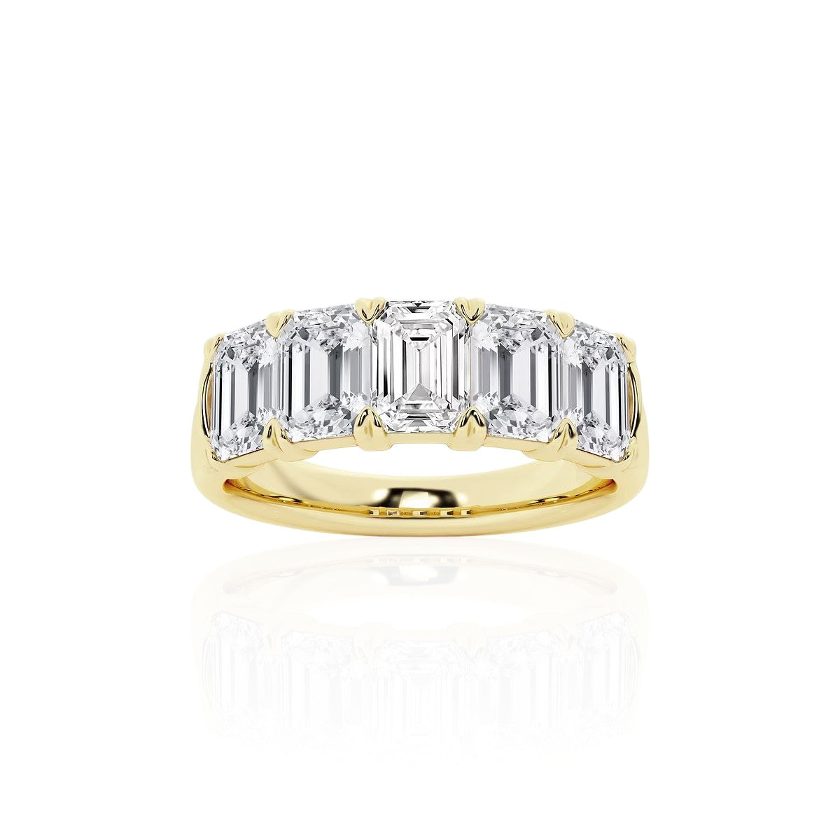The Five-Stone Emerald Half Eternity Band, crafted in 14k yellow or white gold, features stunning colorless diamonds with a clarity of D-E and VS-VVS, the highest in the industry. With an approximate total carat weight of 5.67, this band is perfect for anniversaries, self-gifting, or any special celebration. Treat yourself or your loved one to this exquisite and luxurious piece.