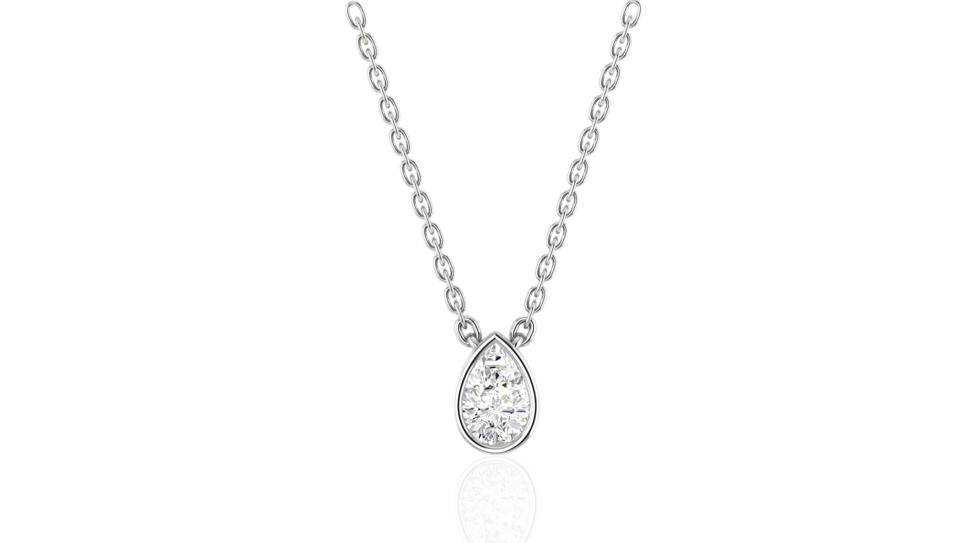 Discover elegance with our Pear Diamond Bezel Pendant Necklace. Choose from a 0.5 to 1 carat colorless diamond of VS VVS clarity and D to E color, in a 14K yellow solitaire setting. Measuring 16-18 inches and weighing 3.16 grams, it is a true work of art. Available in white or yellow gold.