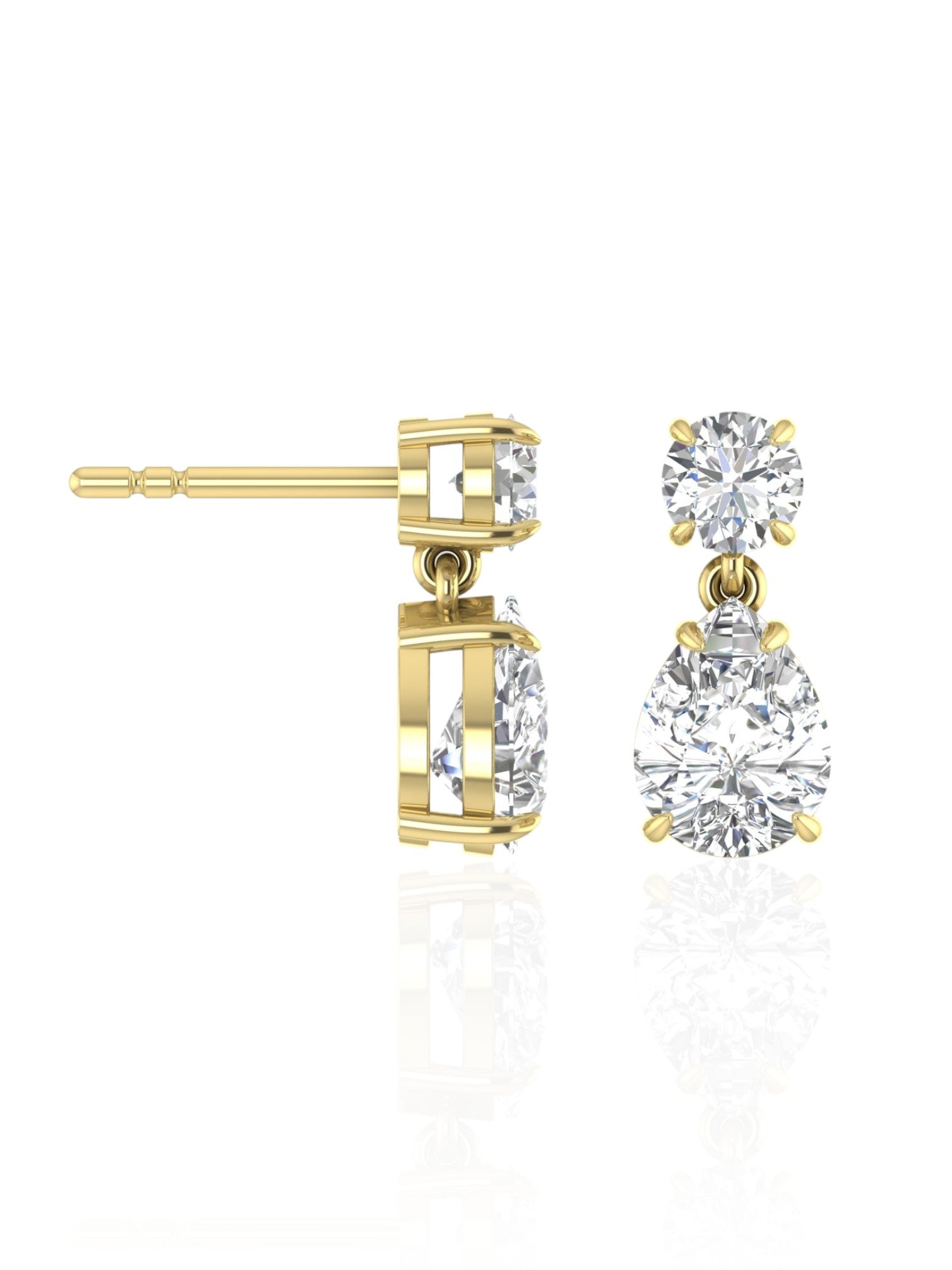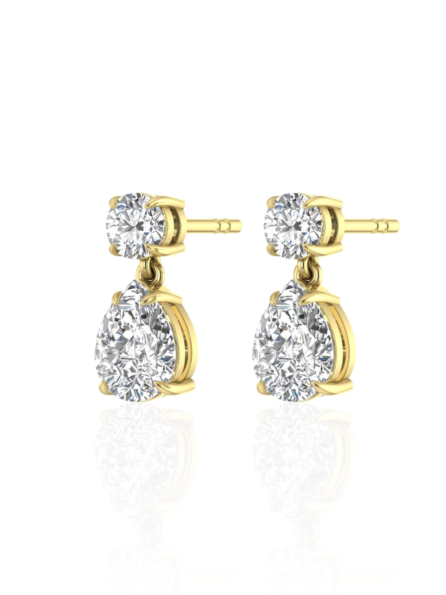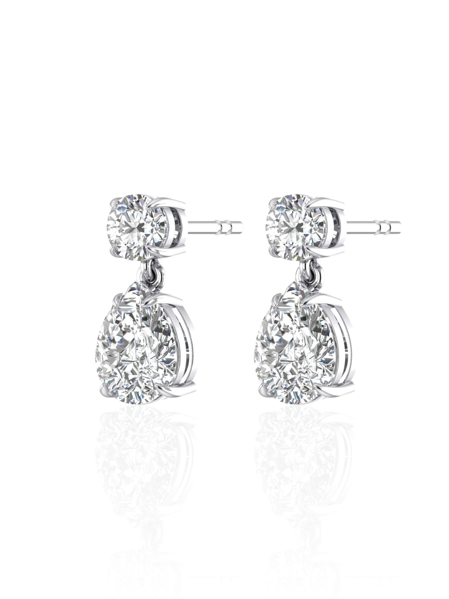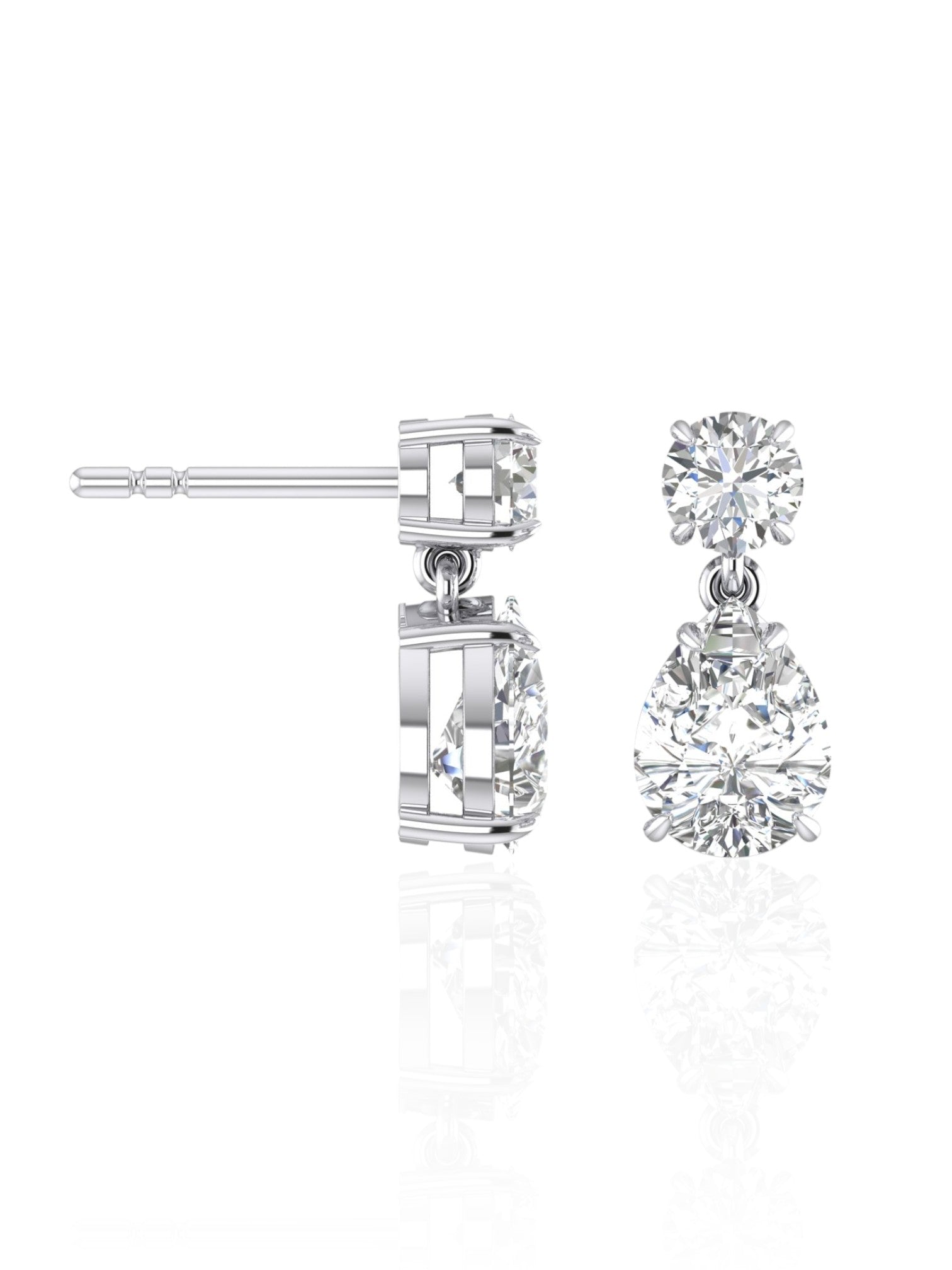 These classic earrings combine timeless design and exceptional quality. With 1.89 carats of sparkling diamonds in a D-E color and VS-VVS clarity, these earrings are the perfect addition to any jewelry collection. They weigh only 2.15 grams, making them lightweight and comfortable to wear. The round brilliant diamond and pear drop shape add a unique touch of elegance and sophistication. With these stunning features, you can't go wrong with Pear Drop Earrings.