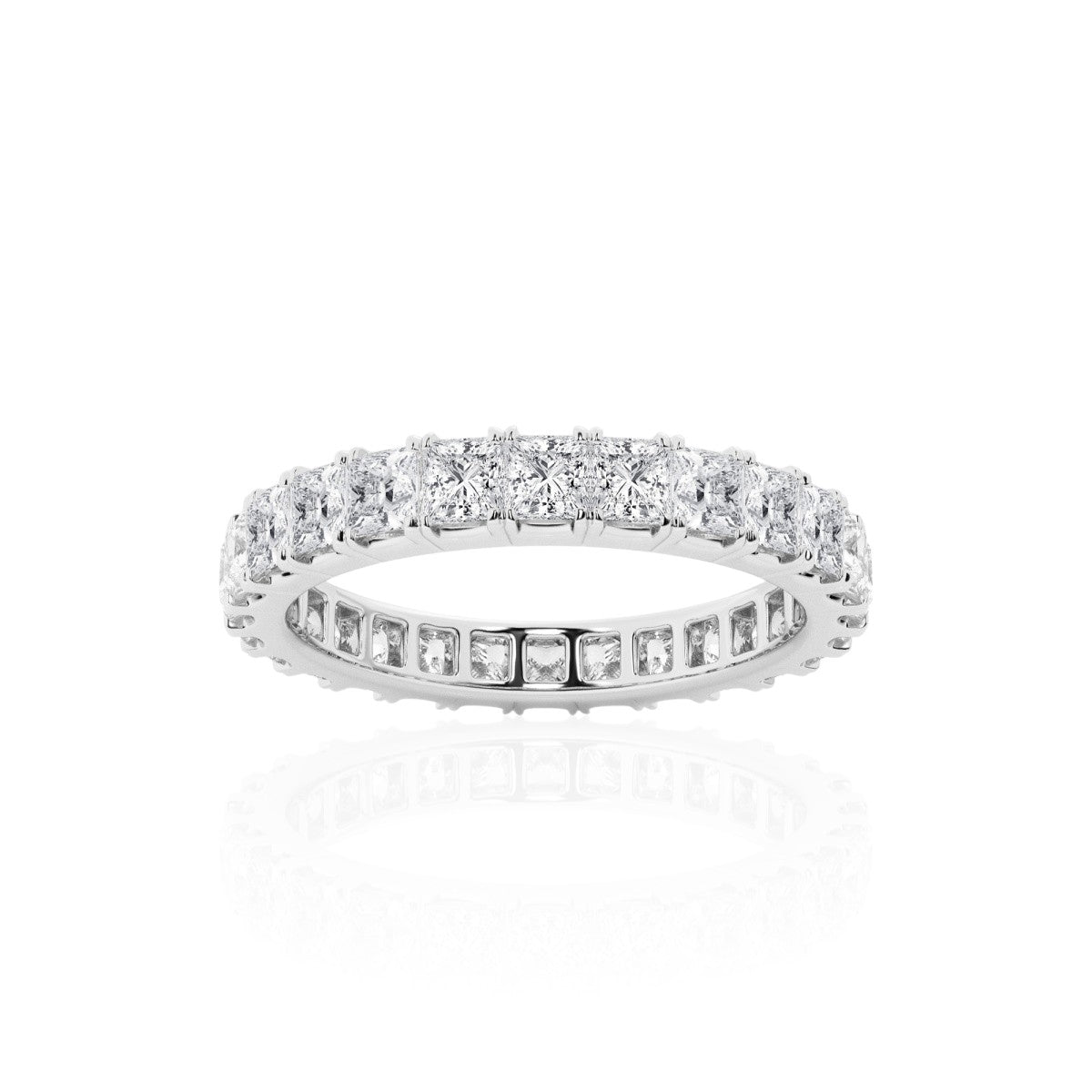 Experience heightened elegance with our Princess Eternity Band. Composed of 32 diamonds, this band is the perfect accent to elevate any ensemble. With an estimated weight of 1.70 GM, it combines exquisite beauty with superior quality. Indulge in unparalleled luxury with our Princess Eternity Band, adorned with 32 Princess colorless diamonds of VVS to VS clarity, all set in shimmering 14k white gold.