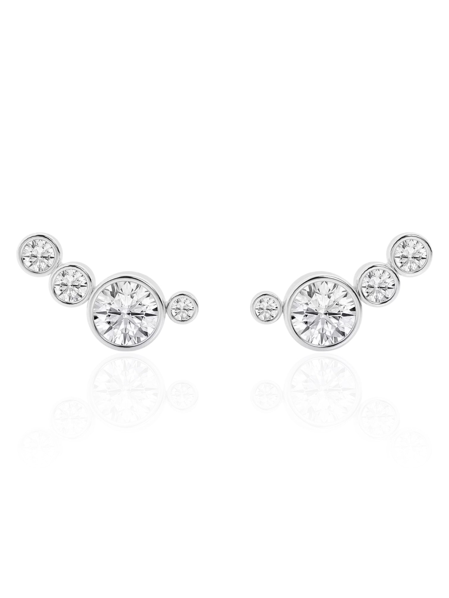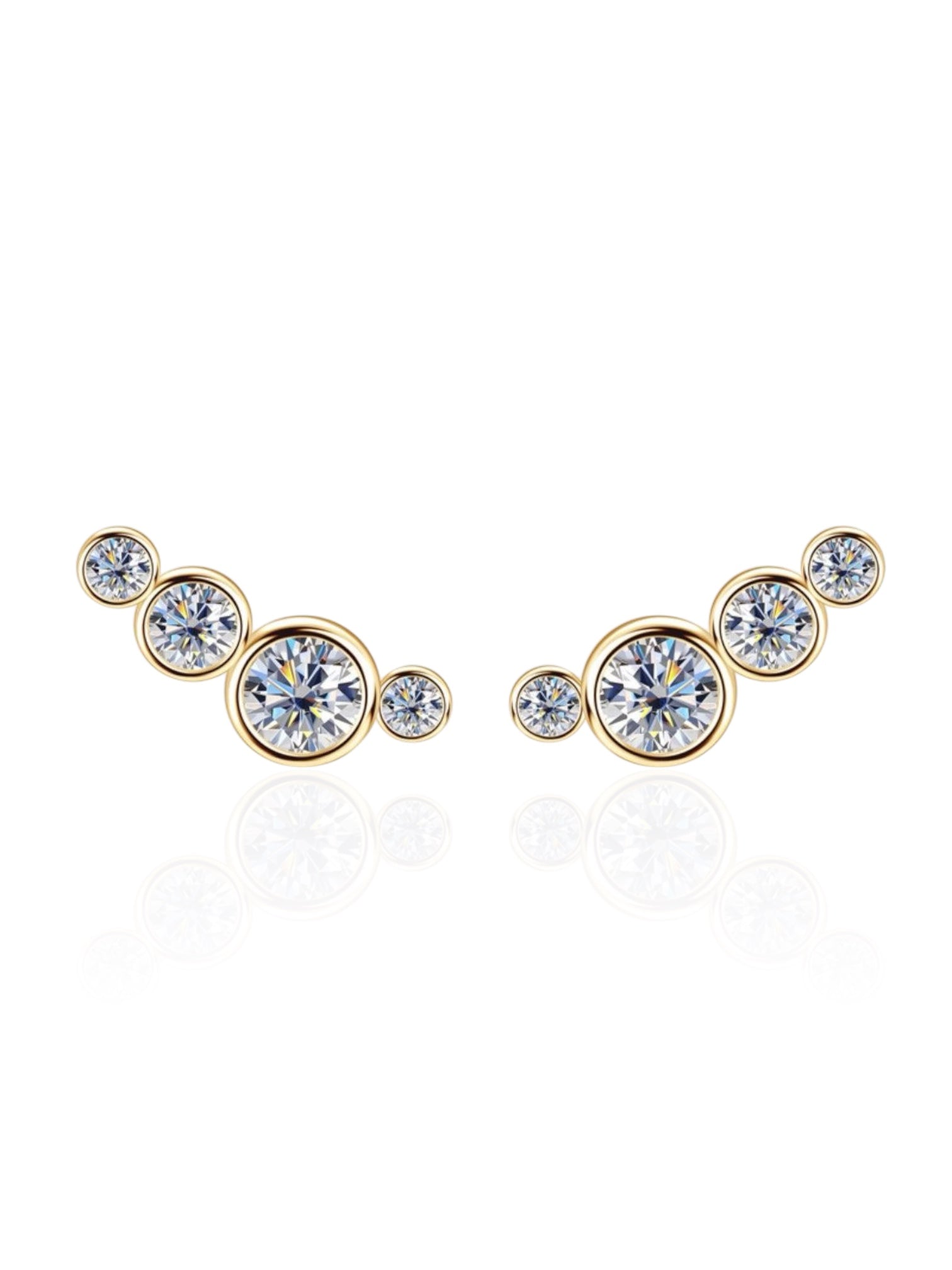 These Tara Round Bezel Climber Earrings are the perfect addition to any night out. Their approximate Gross Weight of 2.70 GM and a Diamond Weight of 1.4 CT, coupled with a clarity grade of VS-VVS and a color range of D-E, highlight their stunning appearance. These earrings are expertly cut, adding to their contemporary and elegant allure. The name "tara" symbolizes a shining star, making these earrings an ideal choice for any occasion.