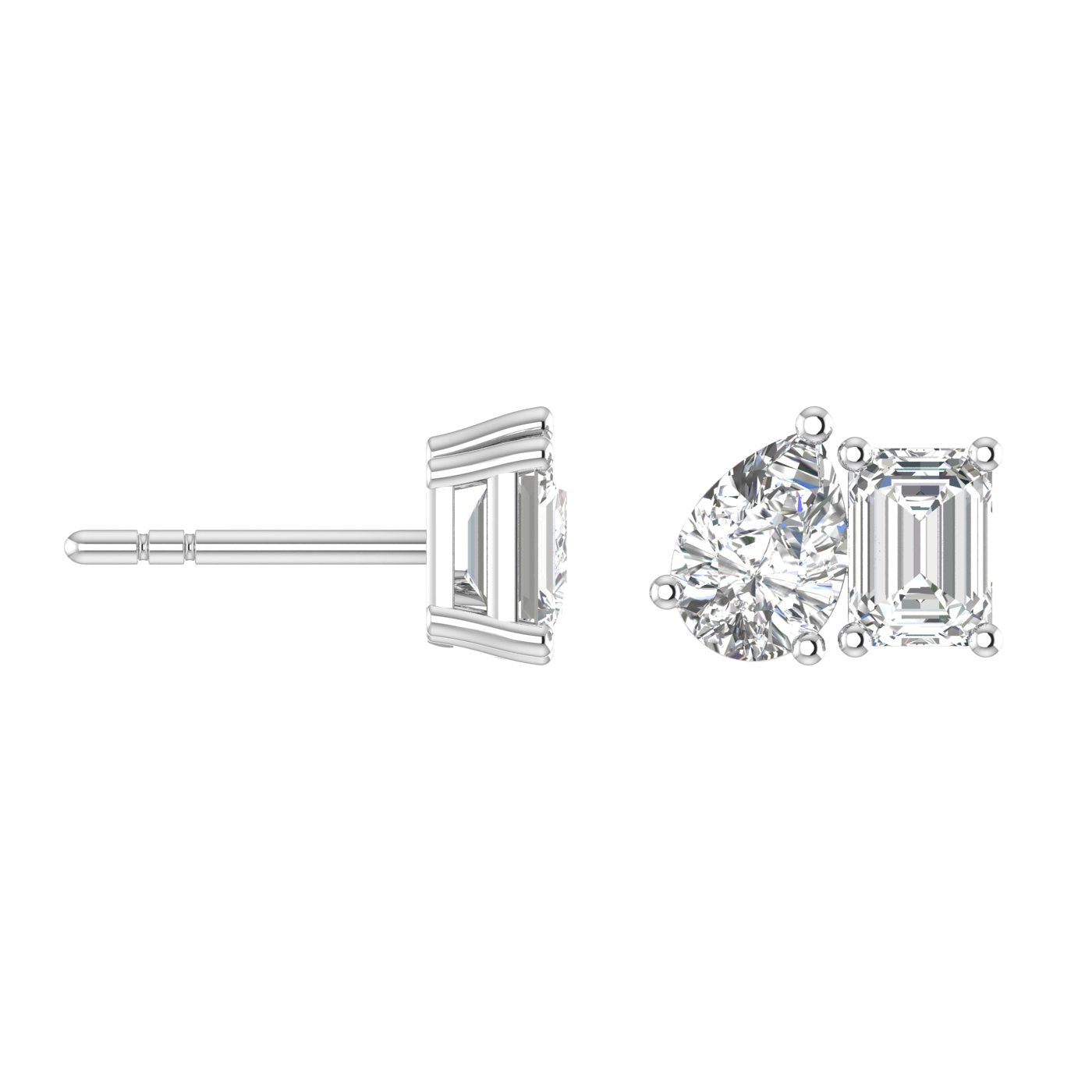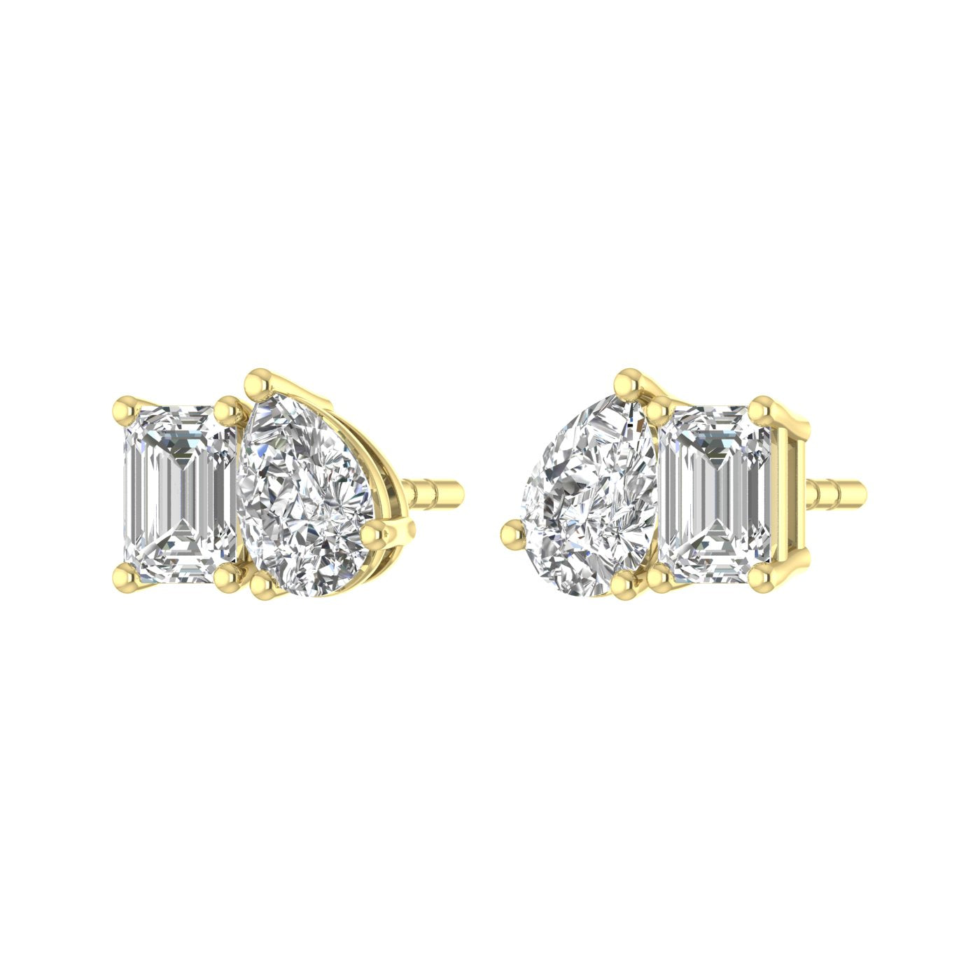 Upgrade your fashion with Toi Et Moi - Emerald & Pear, the perfect blend of sophistication and elegance. This impressive piece showcases a magnificent 2.05 carat emerald and pear cut diamonds, weighing around 2.60 grams. The diamonds, with their flawless VS-VVS clarity, provide a stunning shine to elevate your look. You can choose between 14k White Gold or 14k Yellow Gold for this exquisite piece.